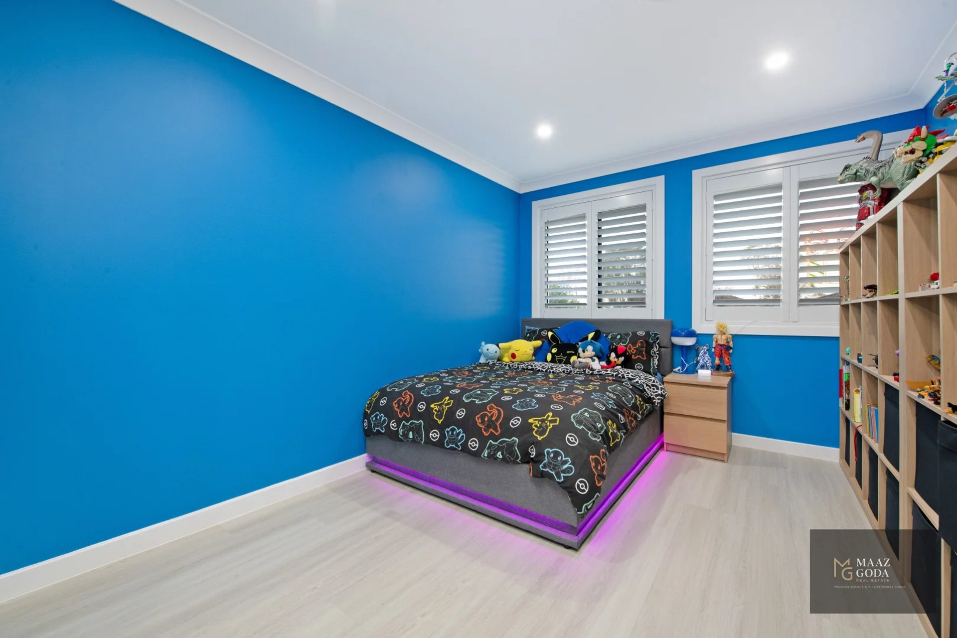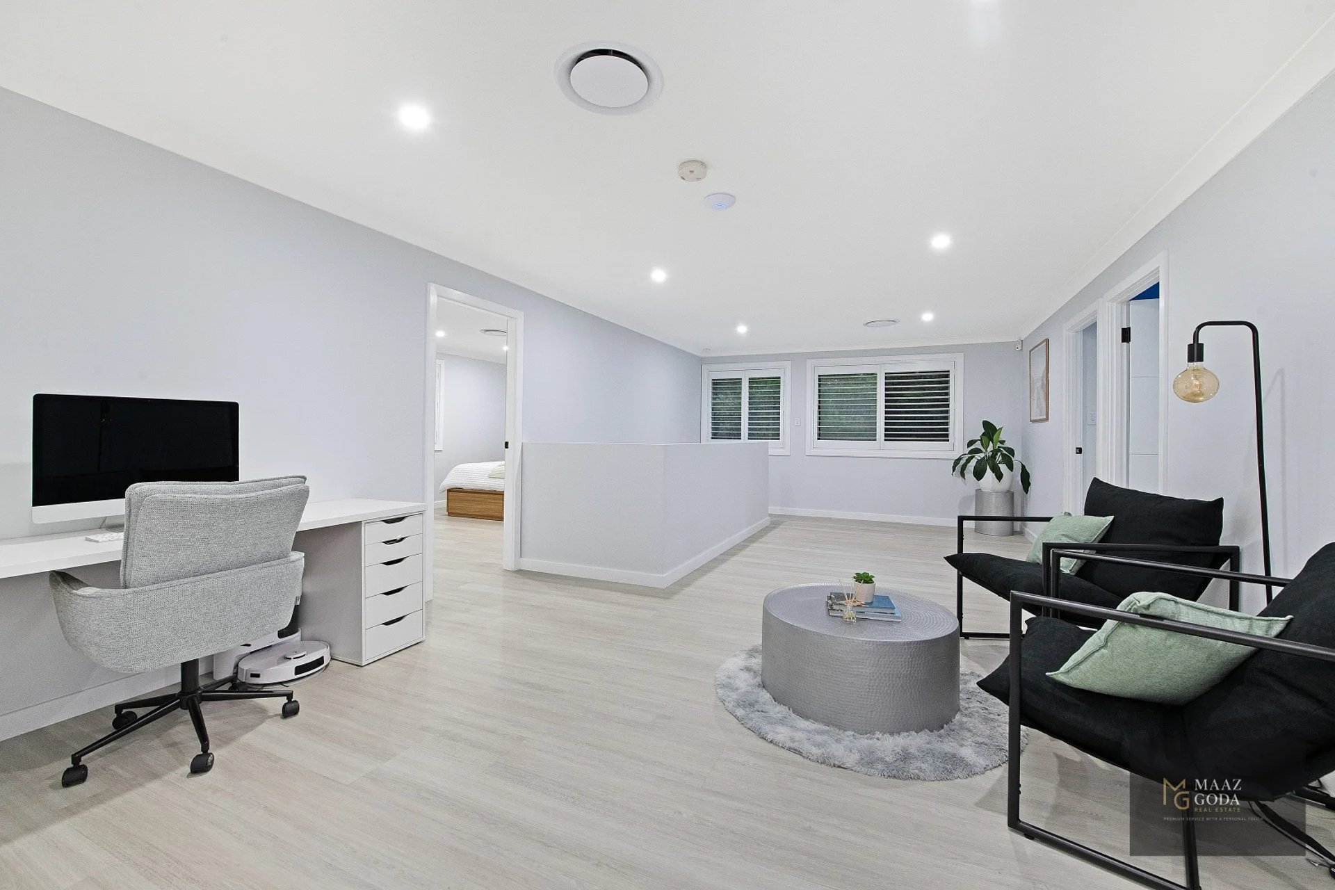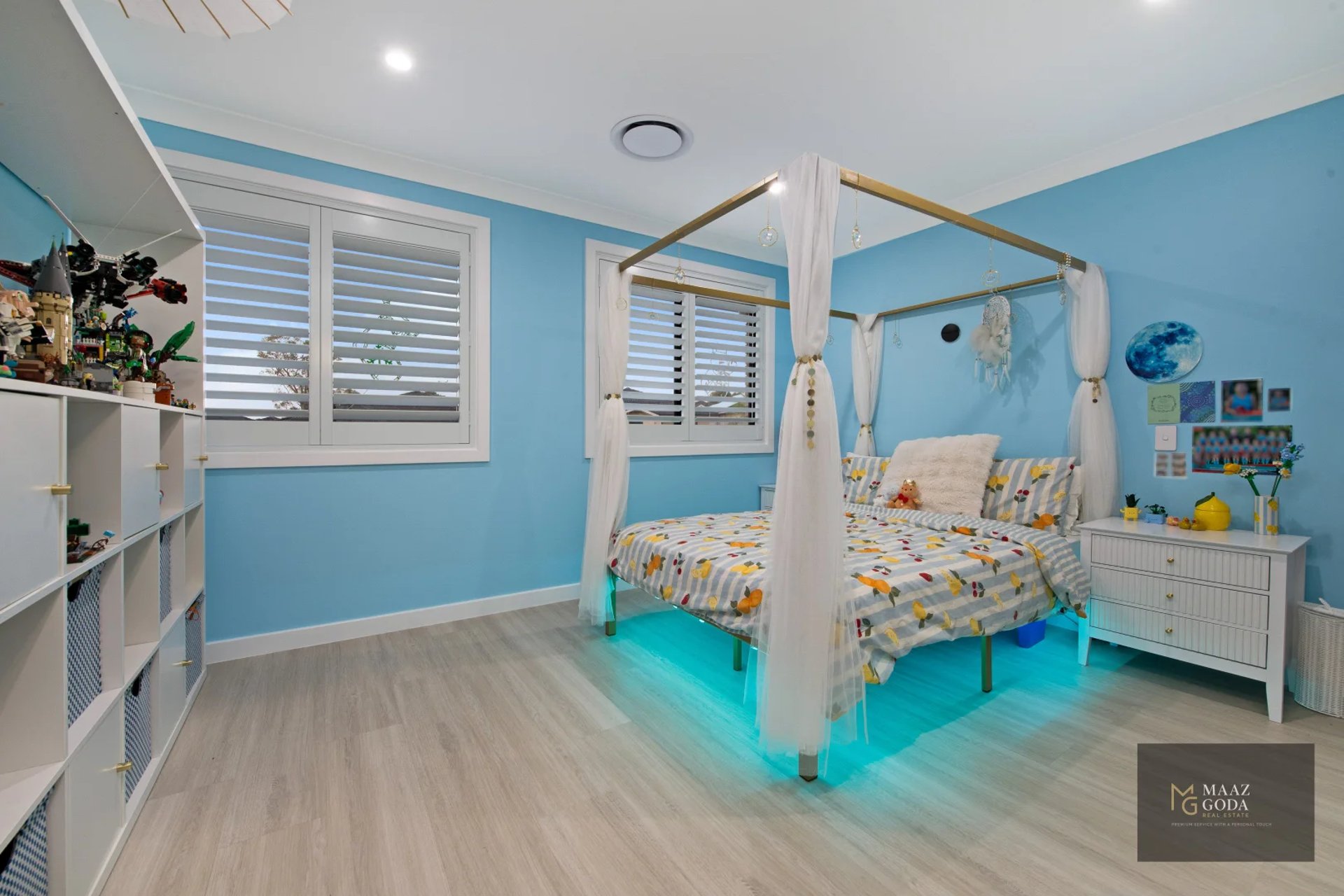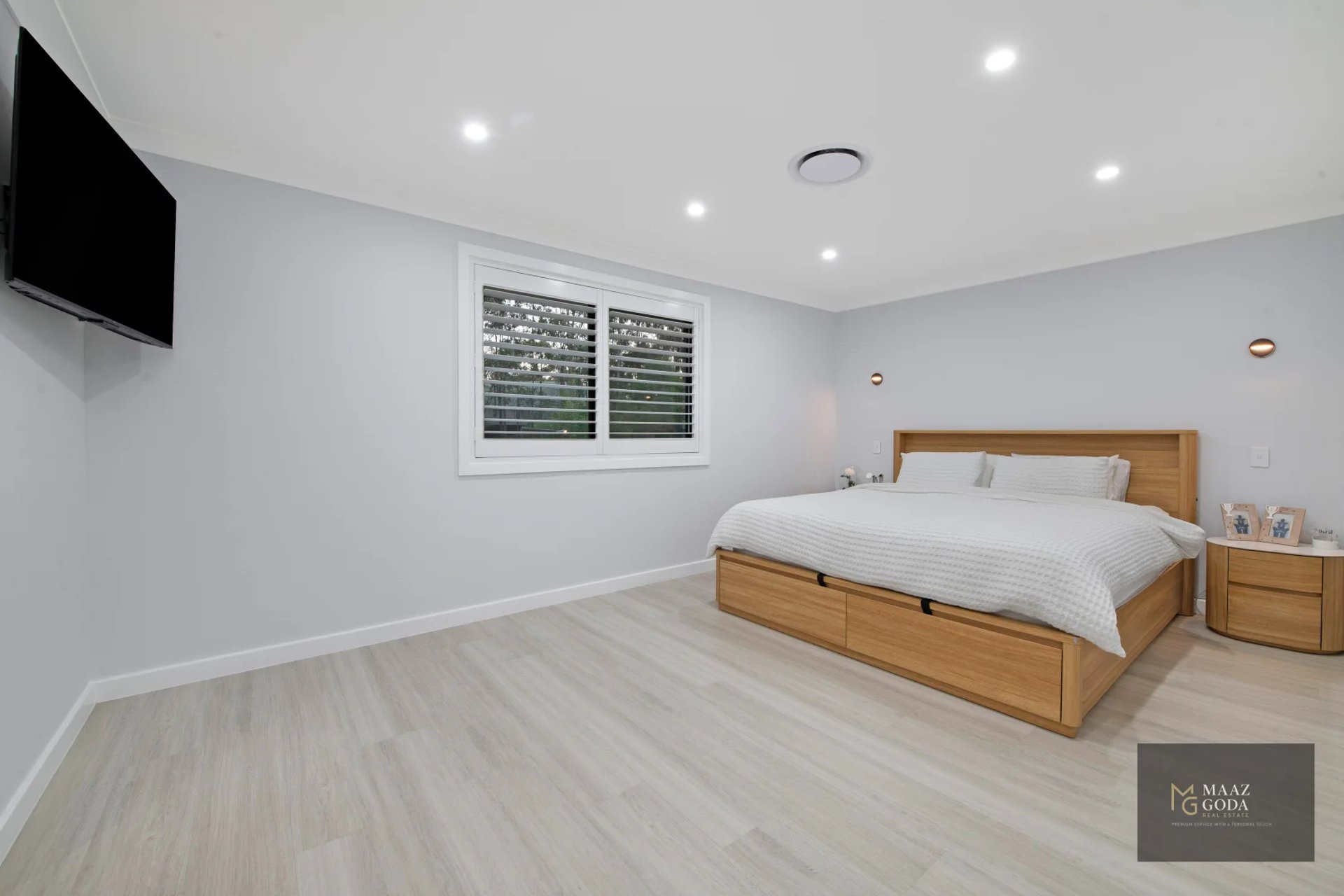 - Hybrid flooring, LED dimmers, plantation shutters, insulated roof