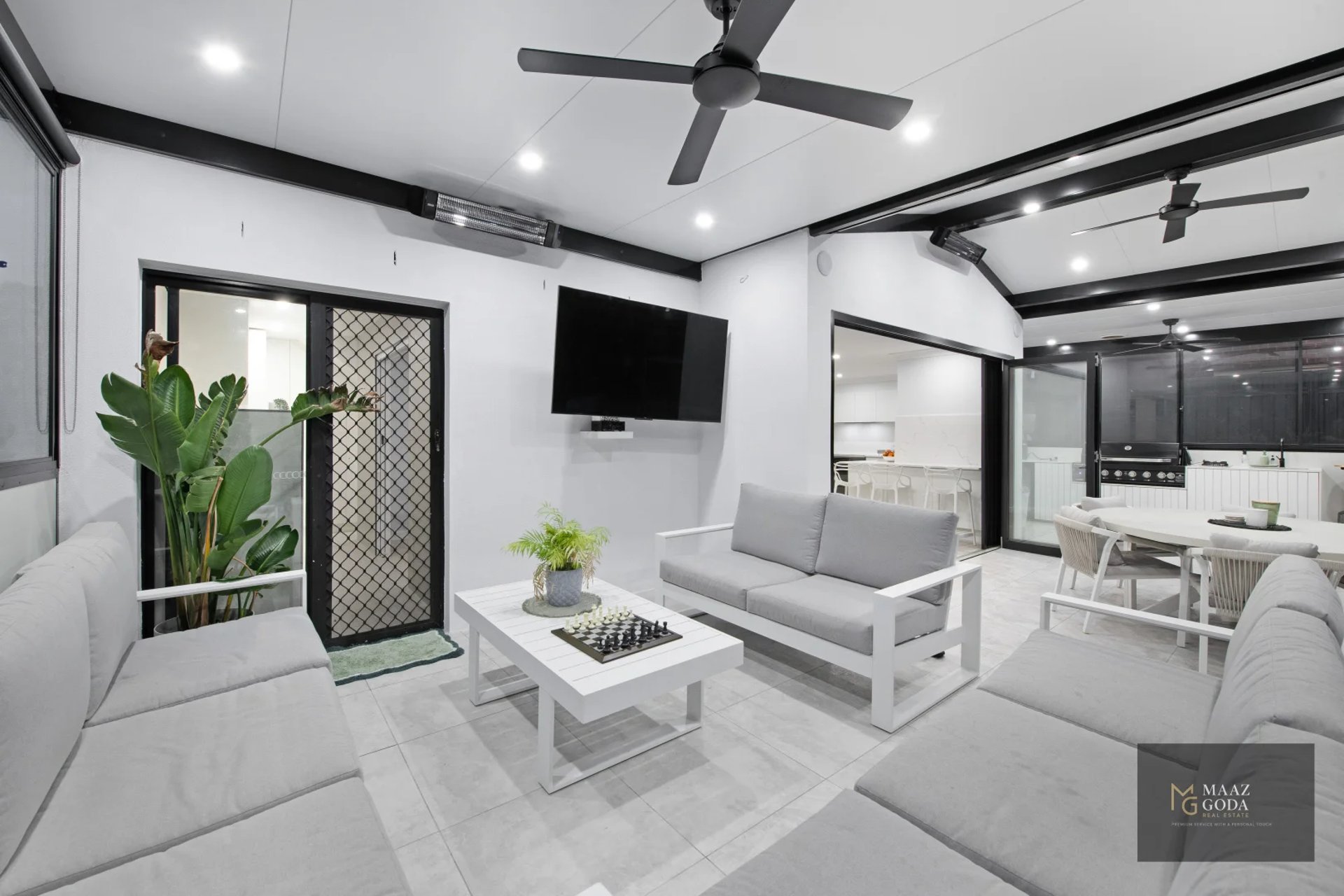 - Oversized bifolds with zip screens, heaters, fans & sound system