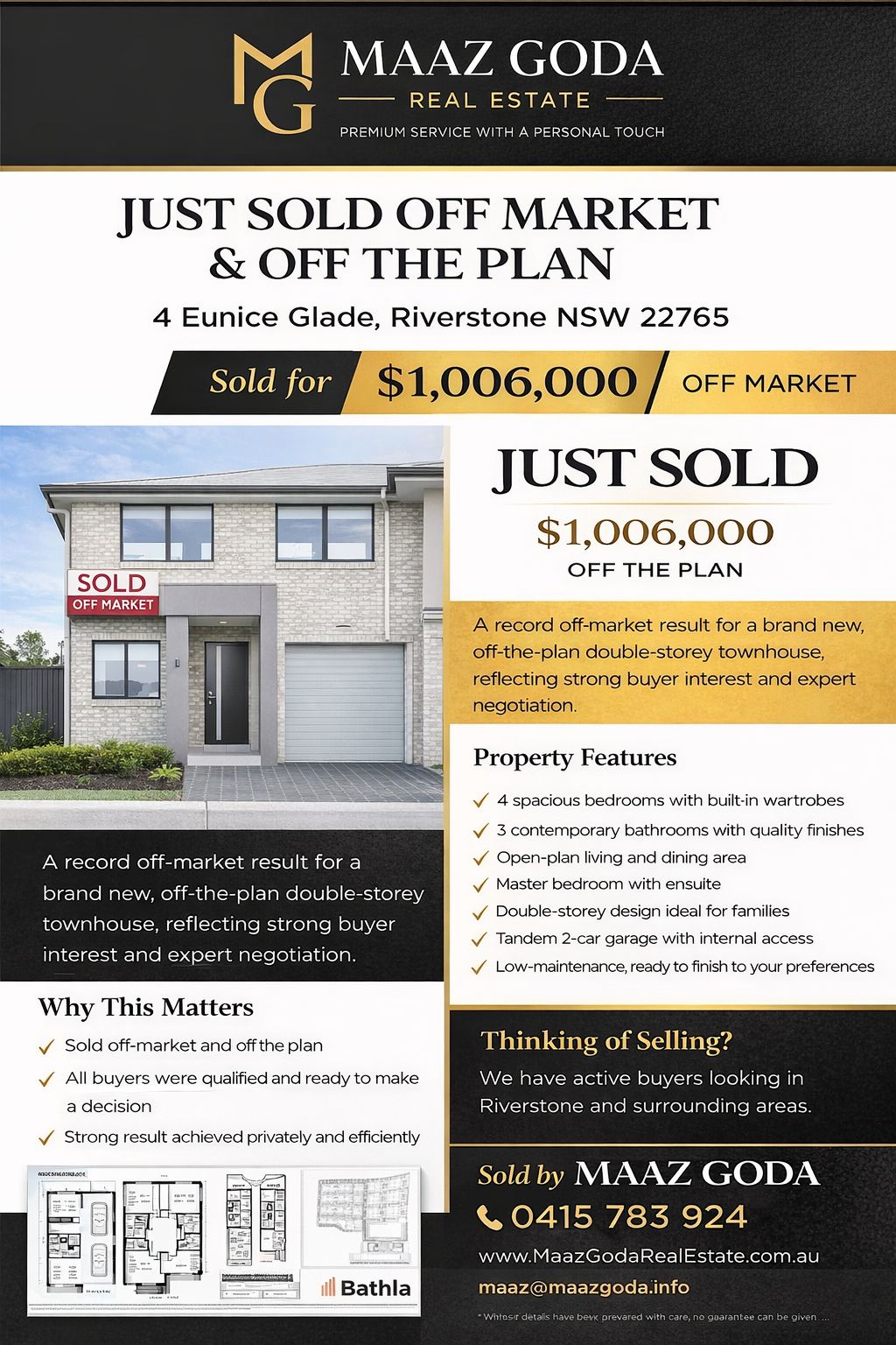 A fantastic off-market result achieved for this beautifully presented double-storey townhouse in the heart of Riverstone. Offering stylish, low-maintenance living, this modern residence featured 4 generous bedrooms, 3 contemporary bathrooms, and a tandem 2-car garage with internal access. Designed for comfort and practicality, the home appealed strongly to families and buyers seeking space, convenience, and a move-in-ready lifestyle. Positioned in one of Riverstone’s growing residential pockets, the property offered close proximity to local shops, schools, transport, parks, and everyday amenities, making it an attractive opportunity in Sydney’s North-West Growth Area. Property Highlights: • 4 spacious bedrooms with built-in wardrobes • 3 modern bathrooms with quality finishes • Open-plan living and dining area • Master bedroom with ensuite and wardrobe • Double-storey design ideal for families • Tandem 2-car garage with internal access • Ready-to-move-in home in a convenient location