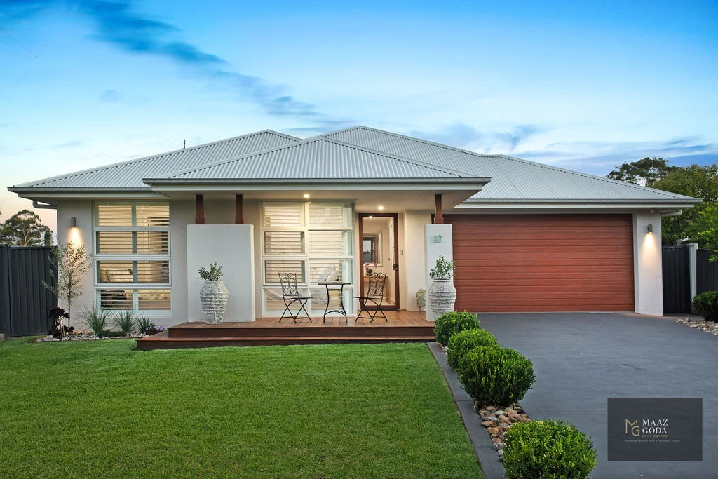 Impeccably Maintained McDonald Jones Residence – North Rooty Hill Maaz Goda, Owner and Director, proudly presents this exceptional family home, offering expansive open-plan living, a dedicated children’s/in-law retreat, and a private theatre room. Positioned on a prized corner block directly opposite Kimberley Park, this residence is perfect for growing families seeking style, comfort, and functionality. Property Highlights Bedrooms & Comfort Four generous bedrooms with ducted air-conditioning and solar panels Built-in wardrobes in two bedrooms, plus a walk-in wardrobe in the master suite Luxurious master suite featuring: Spacious ensuite with waterfall shower Double stone-top vanity Separate toilet Oversized walk-in wardrobe Living & Entertainment Expansive open-plan living, dining, and kitchen area seamlessly connecting to the covered alfresco via glass stacker sliding doors Dedicated theatre room for movie nights or optional fifth bedroom Versatile in-law or teenage retreat with built-in study desk and direct garden access Kitchen & Appliances Statement kitchen with oversized island/breakfast bar, double sink, mixer tap, and water filtration system Waterfall stone benchtops, pendant lighting, and large walk-in pantry Premium Miele appliances including gas cooktop, oven, canopy rangehood, dishwasher, and microwave Bathrooms & Laundry Stylish family bathroom with waterfall showerhead, separate bath and shower, stone-top vanity, and quality fittings Additional powder room with stone vanity Internal laundry with linen cupboard and sliding backyard access Outdoor & Additional Features Covered front patio with spotted gum decking overlooking Kimberley Park Entertainers’ alfresco with tiled flooring, ceiling fan, downlights, and motorised outdoor blind Corner block with drive-through side access, garden sheds, and secure grassy backyard for children and pets High ceilings, LED downlights, spotted gum floating timber floors, and neutral colour palette with elegant plantation shutters Hebel construction with steel frame and Colorbond roofing Double lock-up garage with automatic door and internal access Homes of this calibre are highly sought after and rarely offered, a true showcase of refined family living where timeless design meets uncompromising quality. For further information or to arrange an inspection, contact: Maaz Goda – 0415 783 924